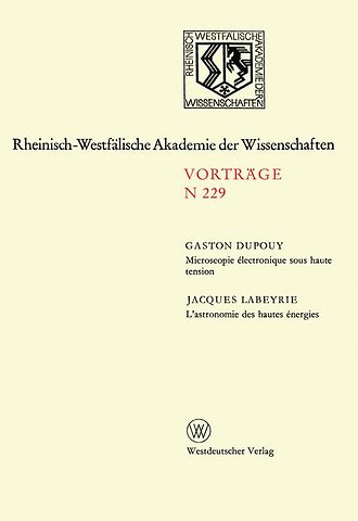 Table des matières.- Microscopie électronique sous haute tension.- Les électrons de grande énergie. Quelques caractéristiques.- Le microscope électronique 3 MV.- La colonne du microscope.- Protection contre les rayons X.- Le générateur haute tension 3,5 MV et le tube accélérateur.- Quelques résultats.- Conclusion.- Bibliographie.- Diskussionsbeiträge Professor Dr.-Ing. Herbert Döring; Ministerialdirigent Dr. phil. Hans Sauer; Professor Dr. Gaston Dupouy; Professor Dr. med. Dr. rer. nat. h. c. Dr. med. h. c. Hugo Wilhelm Knipping.- L’astronomie des hautes énergies.- Le domaine de l’astronomie des hautes énergies.- Les techniques de l’astronomie des hautes énergies.- Principaux résultats déjà obtenus sur les particules solaires.- La composition et l’origine des particules cosmiques galactiques.- Les électrons cosmiques.- Les rayons X cosmiques.- L’astronomie des rayons y.- Diskussionsbeiträge Professor Dr. phil. Martin Schmeißer; Professor Dr. Jacques Labeyrie; Professor Dr.-Ing. Ludwig von Bogdandy; Professor Dr. rer. nat. Otto Hachenberg.