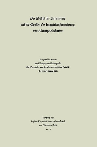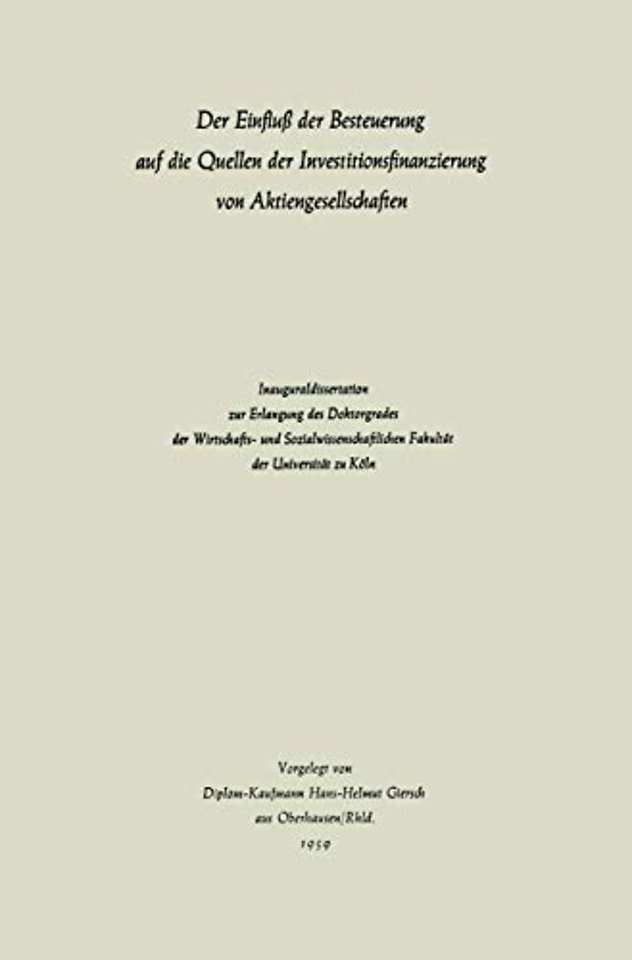 Der Einfluß der Besteuerung auf die Quellen der Investitionsfinanzierung von Aktiengesellschaften