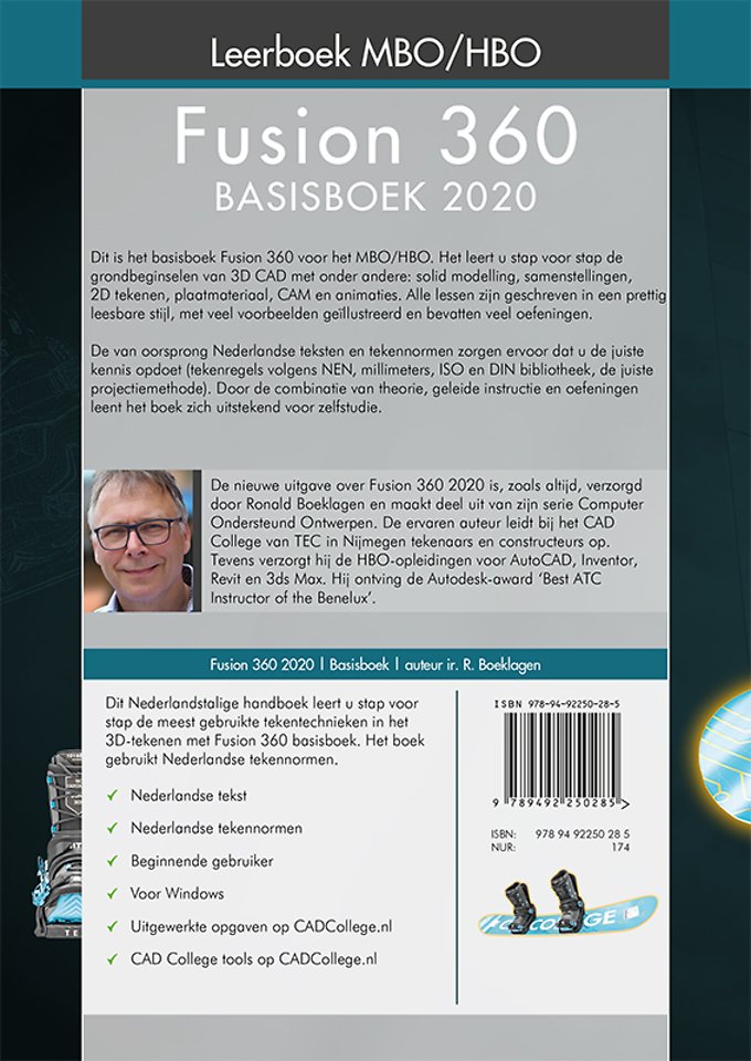 Deze nieuwe uitgave over 'Fusion 360 2020' is, zoals altijd, verzorgd door Ronald Boeklagen en maakt deel uit van zijn serie Computer Ondersteund Ontwerpen. De ervaren auteur leidt bij het CAD College van TEC in Nijmegen tekenaars en constructeurs op. Tevens verzorgt hij de HBO-opleidingen voor Inventor, Fusion 360, AutoCAD, 3ds Max en Revit. Hij ontving de Autodesk award ‘Best ATC Instructor of the Benelux’.